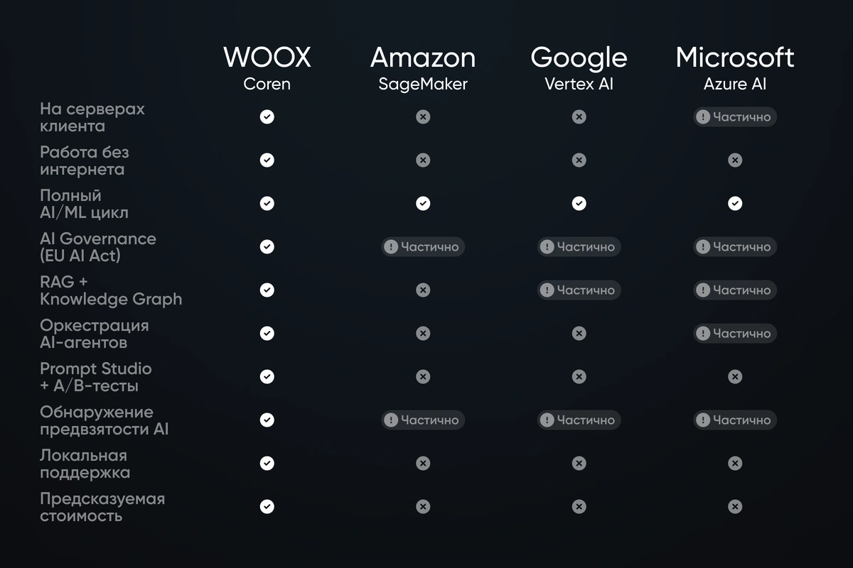 - AI-стратегия – WOOX не просто поставляет софт. Компания помогает определить, где AI принесет бизнесу максимальную отдачу.