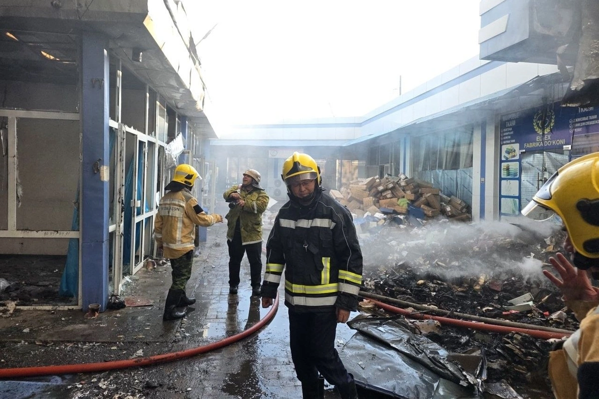 Сообщение о возгорании в торговом комплексе на окраине столицы поступил в дежурную часть столичного УЧС в 15:56. По данным ведомства, пожар начался в одном из магазинов на территории рынка.